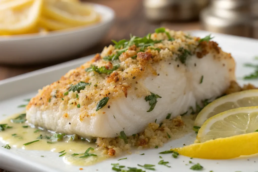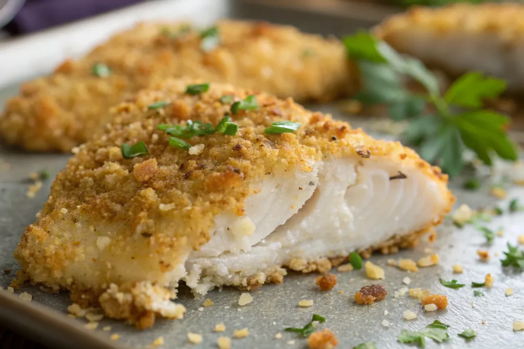 This recipe uses a flavorful mixture of Parmesan, parsley, garlic, whole-grain breadcrumbs, and lemon zest to create a savory topping. When baked, the topping turns golden and crisp while the fish remains soft and flaky underneath. It’s a healthier alternative to fried fish and packed with bold, cheesy-herb flavor. This dish is excellent for weeknights but also elegant enough for entertaining guests.