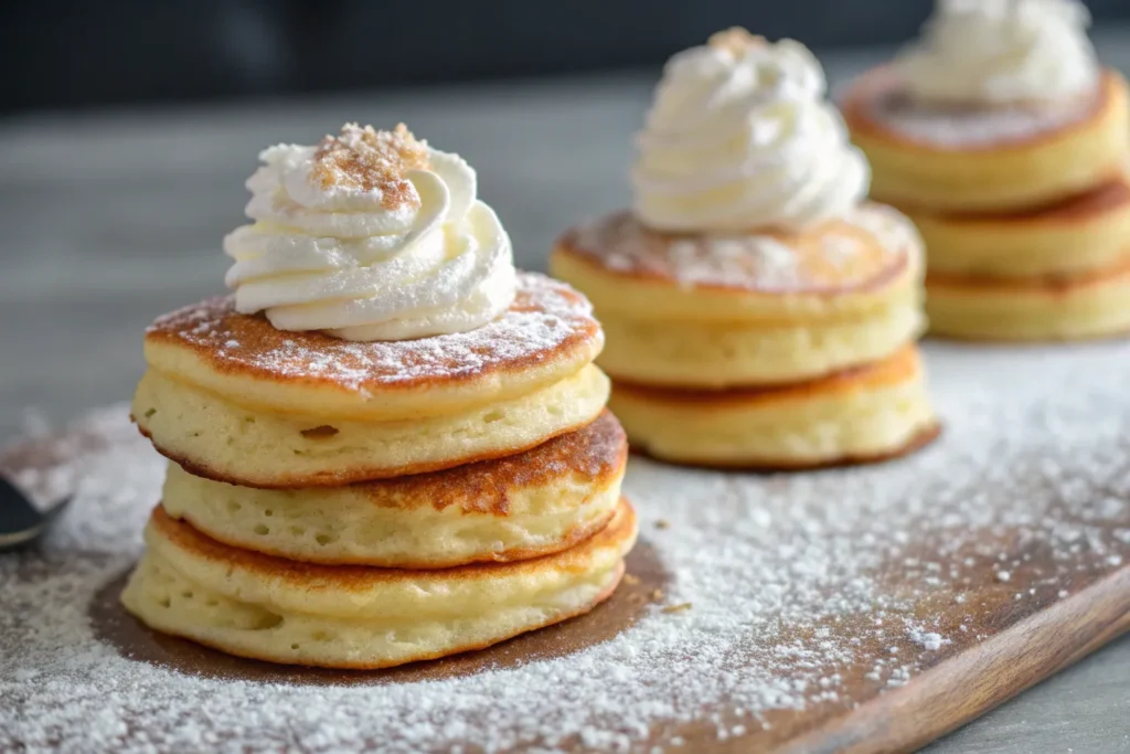 - Stack 3–4 pancakes, drizzle maple syrup, and top with a berry.