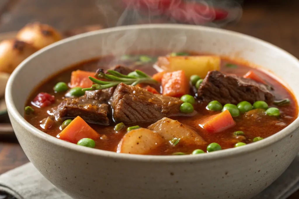Few meals are as comforting as a slow-simmered beef stew. Tender chunks of beef, carrots, potatoes, and onions are cooked in a savory broth until everything is melt-in-your-mouth delicious. Serve it with a slice of crusty bread to soak up all that flavorful gravy.