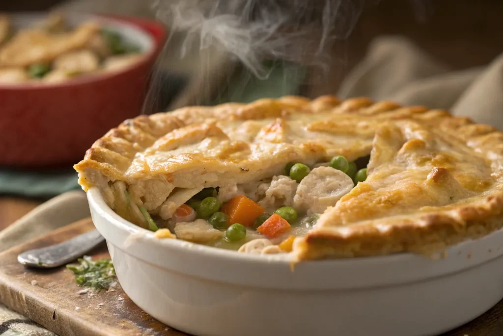 Golden, flaky pastry on top and a creamy filling inside—chicken pot pie is the ultimate comfort food. Packed with chicken, peas, carrots, and a luscious sauce, it’s a dish that feels like a warm hug on a chilly night.