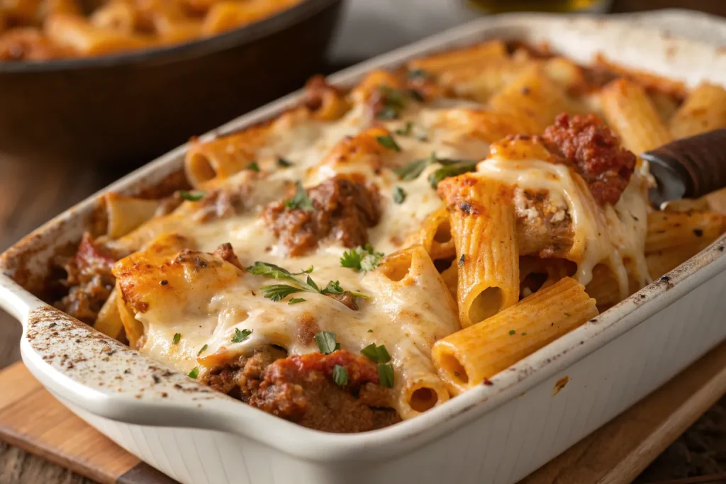 Rich tomato sauce, plenty of melted cheese, and perfectly cooked pasta come together in this baked dish. Adding seasonal vegetables like roasted zucchini or mushrooms can give this dish a fall-friendly twist.