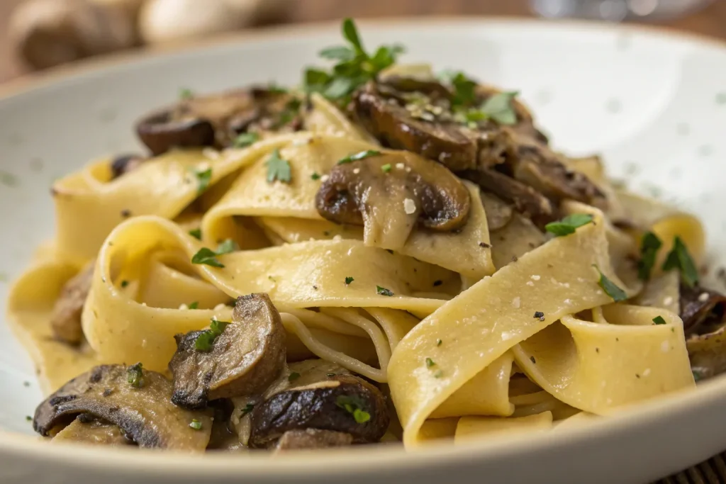 Sauté a mix of wild mushrooms in butter, garlic, and thyme. Toss with wide pappardelle noodles and finish with a splash of cream for a luxurious, earthy dinner.