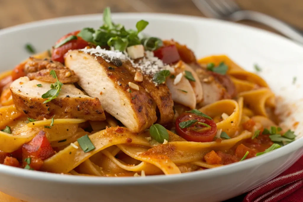 A twist on classic Alfredo, this version swaps heavy cream for velvety pumpkin purée. Garlic, nutmeg, and parmesan create a rich, autumnal sauce that pairs perfectly with fettuccine.