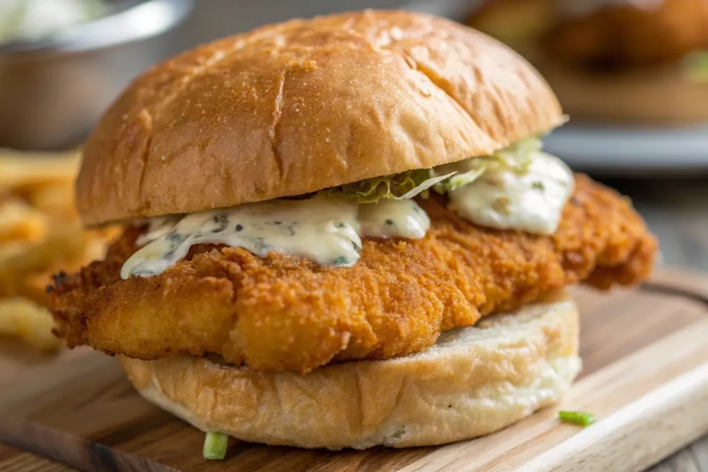 Turn your fried fish into a hearty sandwich by layering crispy fillets with lettuce, tomato, pickles, and tartar sauce on a soft bun. Cod, haddock, or catfish all work well for this recipe. It’s a satisfying meal that’s perfect for lunch or an easy dinner on the go.