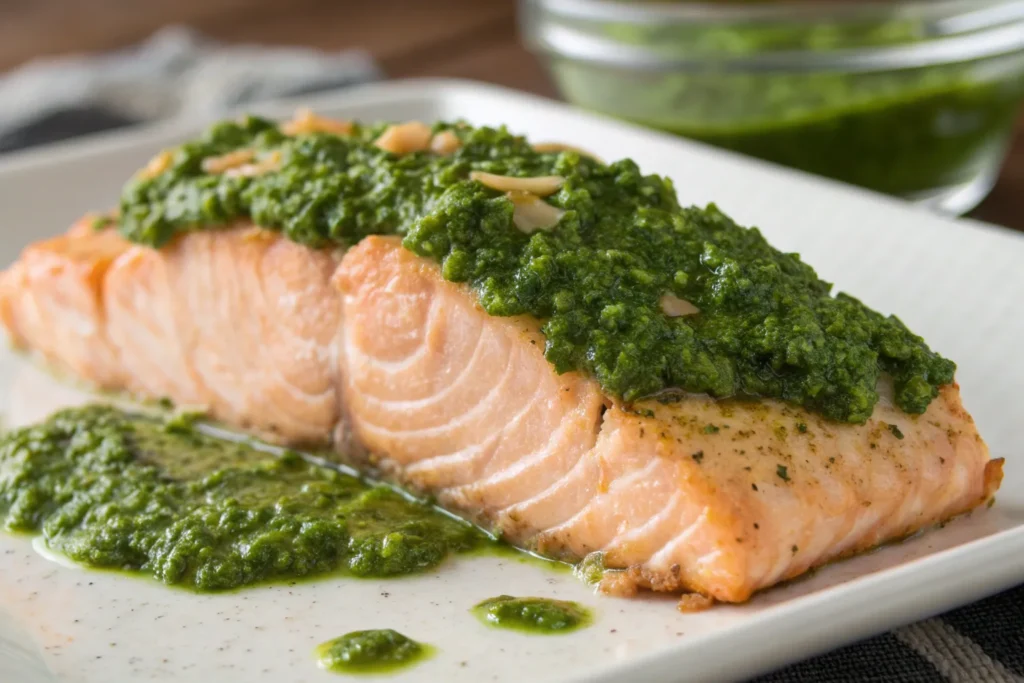 A layer of basil pesto spread over salmon fillets gives this dish a fresh, herby flavor. As the salmon bakes, the pesto seeps into the fish, keeping it moist and flavorful. It’s an elegant yet easy dinner that pairs beautifully with roasted vegetables or pasta.