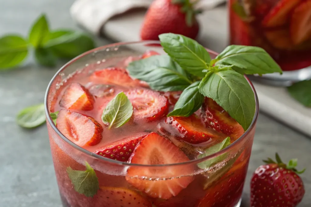 Begin by heating strawberry juice or blended fresh strawberries with water, then add fresh basil leaves as the mixture warms. Allow the basil to infuse briefly, remove from heat, and strain if desired. Serve hot with a basil leaf garnish for an unexpected yet cozy flavor combination.
