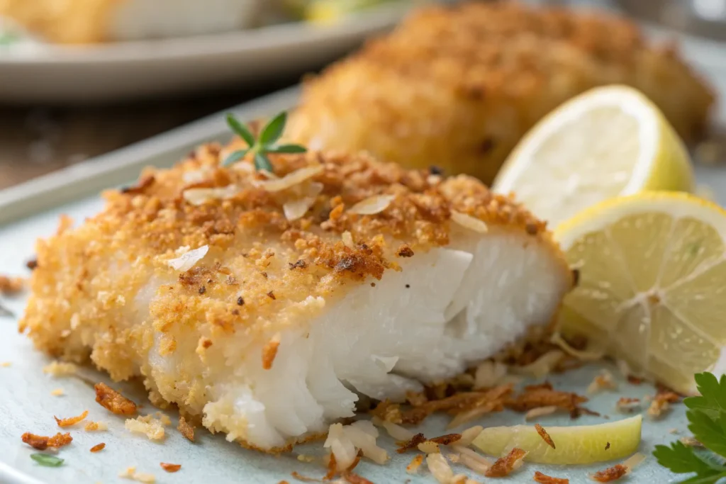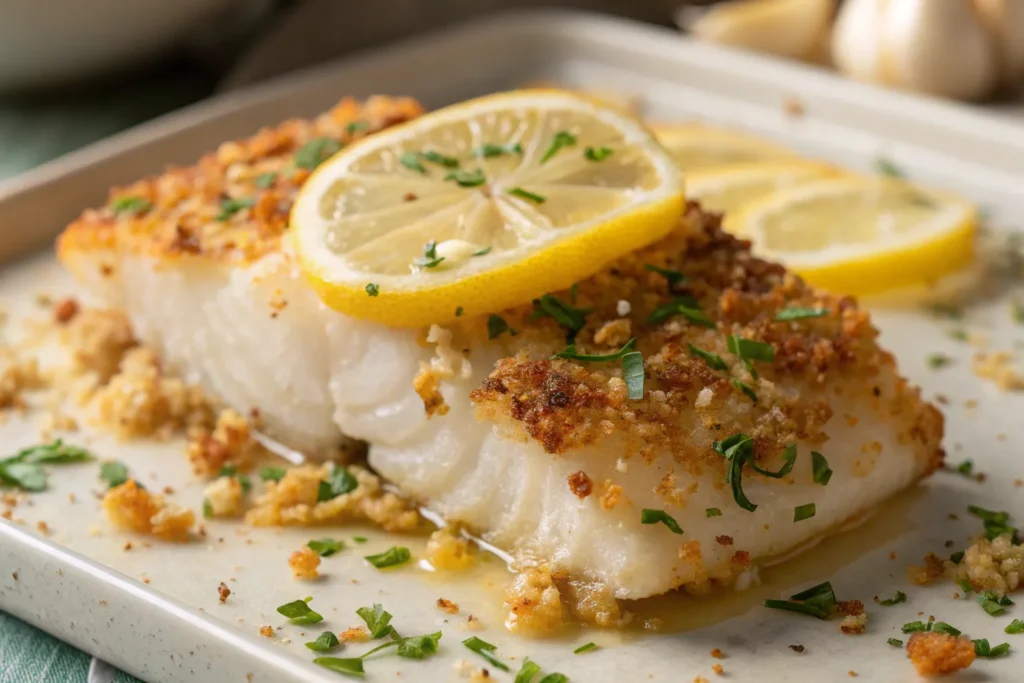 Crispy without frying, tilapia filets are coated in panko breadcrumbs, garlic powder, and a bit of Parmesan, then baked until golden. It’s healthy, crunchy, and perfect for kids or picky eaters.