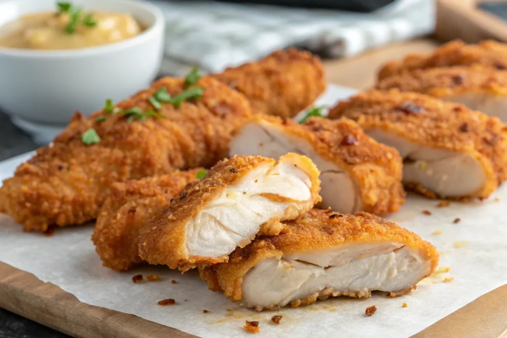 Forget the frozen version, homemade baked chicken tenders are healthier and just as satisfying. Simply coat chicken strips in seasoned breadcrumbs, pop them in the oven, and bake until golden and crispy. They’re crunchy on the outside, juicy on the inside, and pair perfectly with ketchup, honey mustard, or your favorite dipping sauce. A simple, crowd-pleasing dinner the whole family will devour.
