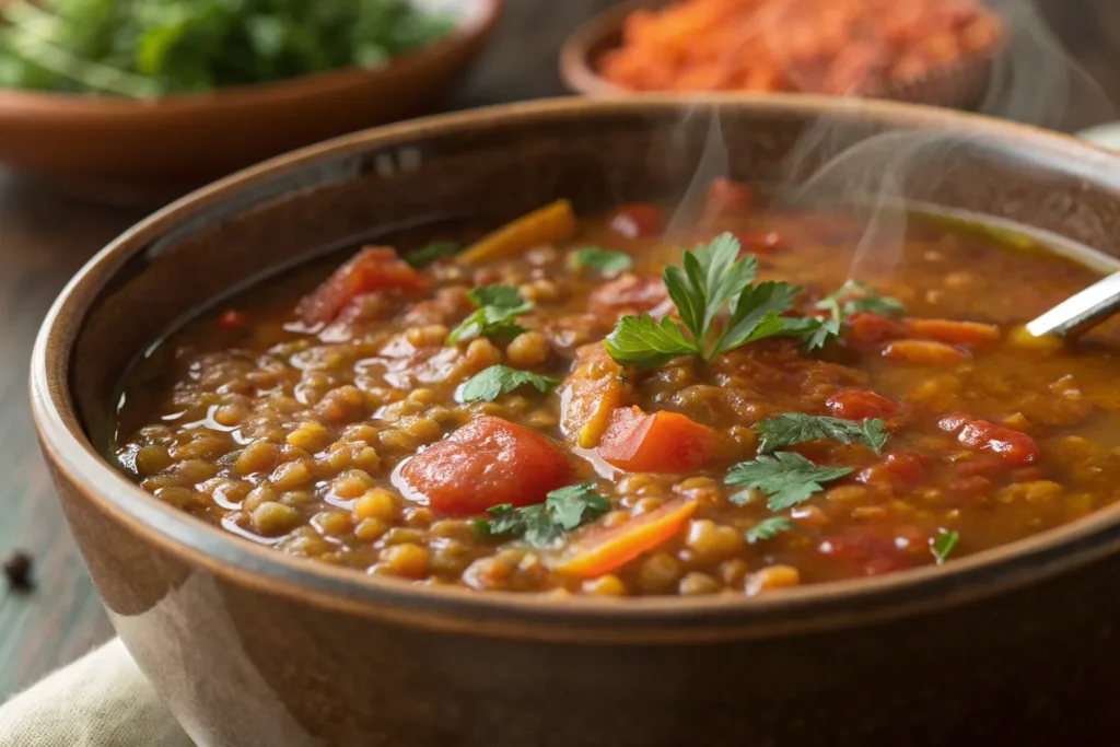 Packed with lentils, carrots, celery, and warming spices, this budget-friendly soup is both hearty and healthy.