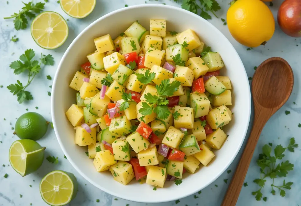 A light, juicy salad with tropical pineapple, cooling cucumber, and a zesty lime dressing.