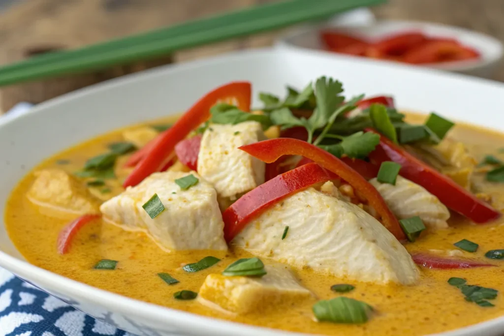 Simmer white fish fillets in coconut milk with red curry paste, ginger, garlic, and lemongrass. Add vegetables like bell peppers and snow peas, and serve over jasmine rice for a fragrant, warming meal.
