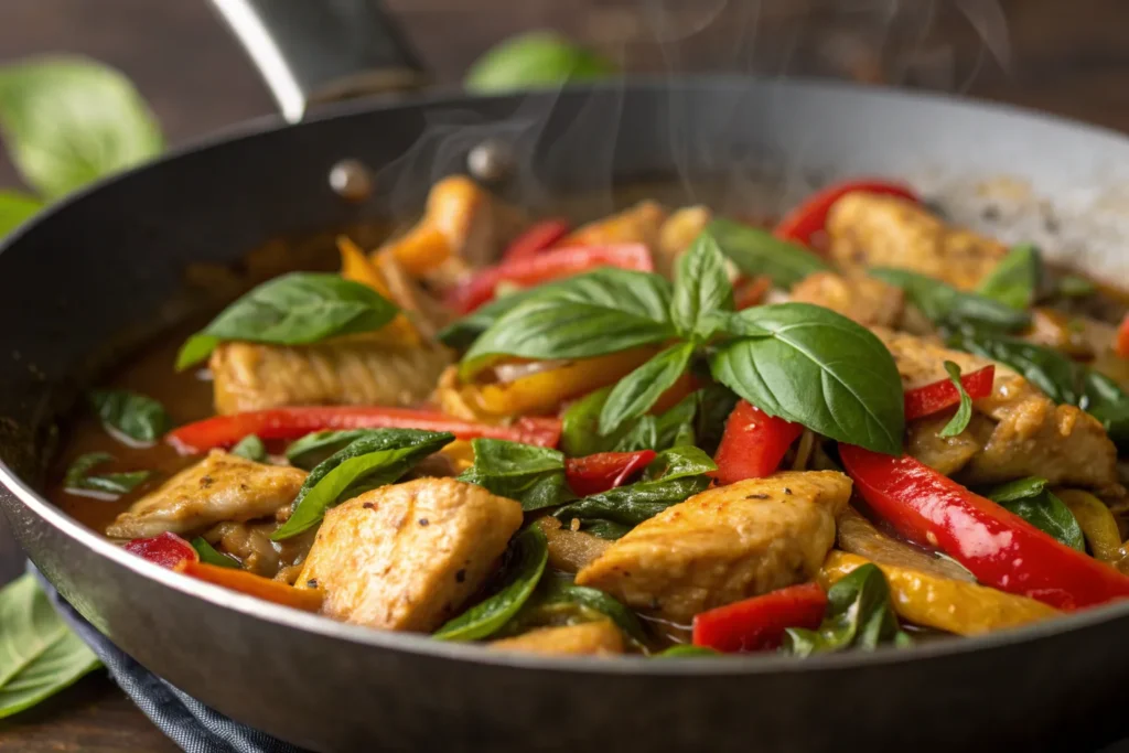Sauté fish chunks with garlic, chili, and bell peppers, then toss with fresh Thai basil leaves. Serve over rice for a quick, vibrant meal bursting with flavor.