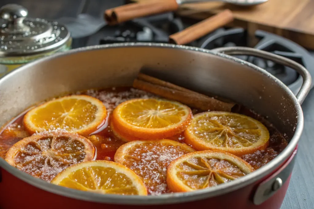 This recipe uses fresh oranges as the main ingredient, granulated sugar to sweeten and thicken naturally, and a single warm winter spice such as cinnamon or cloves to add seasonal depth. The simplicity of the ingredient list allows the natural citrus flavor to shine while still feeling festive and comforting.