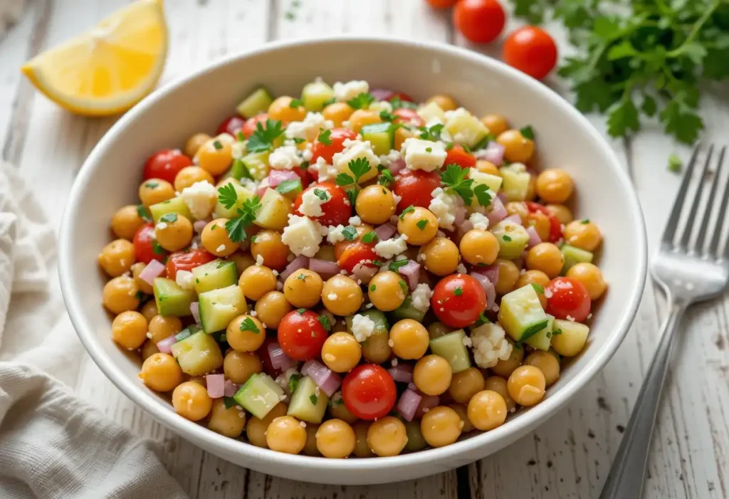 - Most of it comes from chickpeas and fresh veggies like lettuce, carrots, or cucumber.