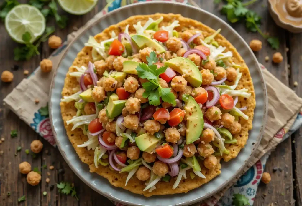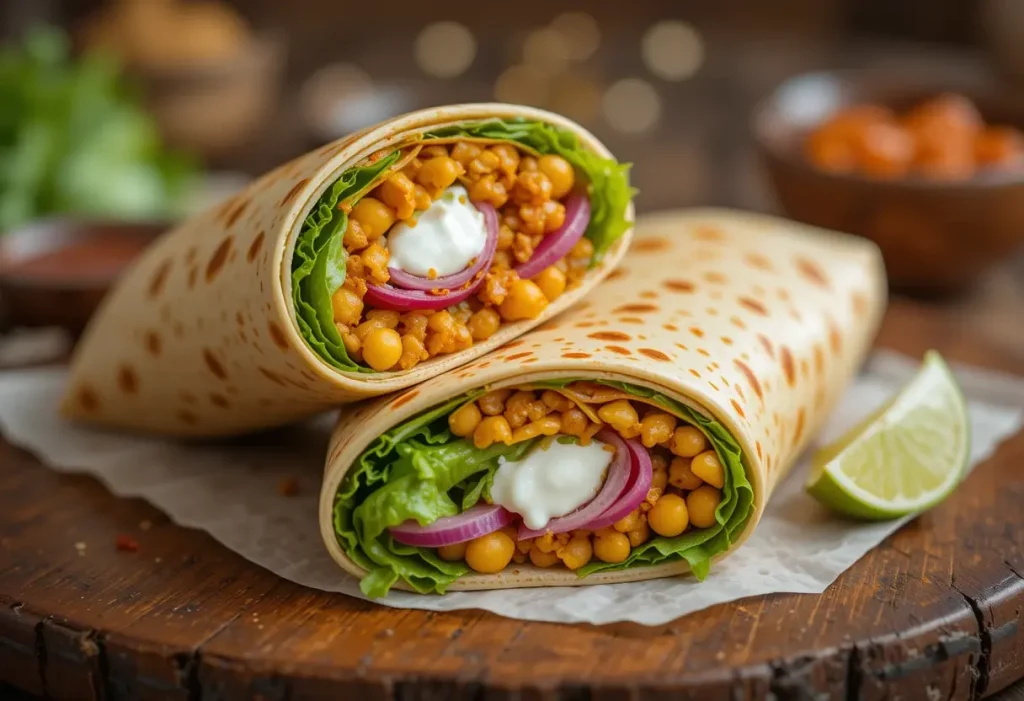 - The 28 grams likely come from the wrap (tortilla), chickpeas, and vegetables.