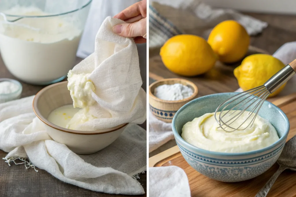 1. Place Greek yogurt in a muslin cloth or fine strainer.