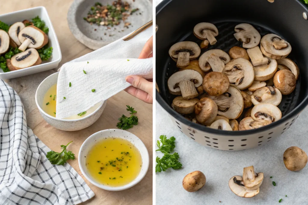 Begin by prepping your mushrooms, wipe them clean with a damp paper towel and slice any extra-large pieces so everything cooks evenly. In a mixing bowl, toss the mushrooms with olive oil or melted butter, making sure each piece gets coated. Add the ranch seasoning, garlic powder, and black pepper, then toss again until the mushrooms are fully flavored and evenly seasoned. Preheat your air fryer to 380°F for a couple of minutes, then spread the mushrooms in a single layer in the basket to ensure even browning. Cook for 8–10 minutes, shaking the basket halfway through, until the mushrooms are tender, golden, and lightly crisp on the outside. Garnish with parsley before serving if you like a pop of freshness.