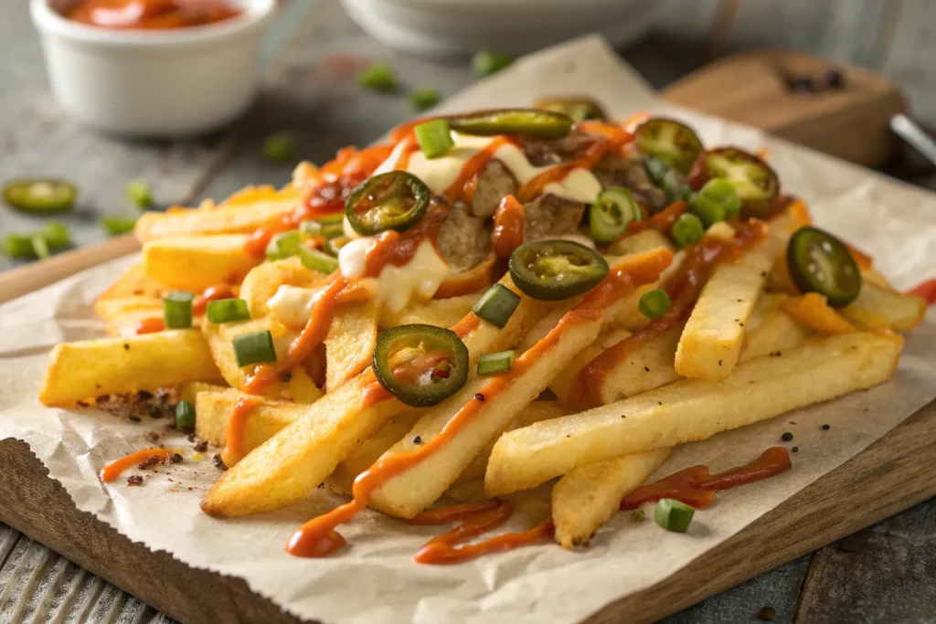 Turn up the heat with bold and flavorful Louisiana Voodoo Fries. Crispy fries are loaded with Cajun seasoning, cheese, and zesty toppings, making them a spicy, indulgent snack your guests won’t forget.