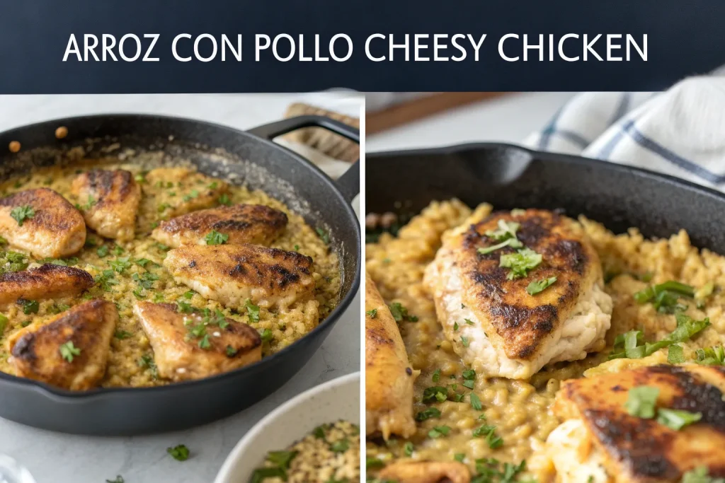 Arroz Con Pollo Cheesy Chicken is the perfect blend of comfort and flavor; a creamy, cheesy twist on the classic Latin dish “rice with chicken.” It’s hearty, full of vibrant spices, and loaded with tender chicken, golden rice, and melty cheese. Think of it as a one-pot meal that brings all the warmth of home cooking with a gooey, irresistible finish.