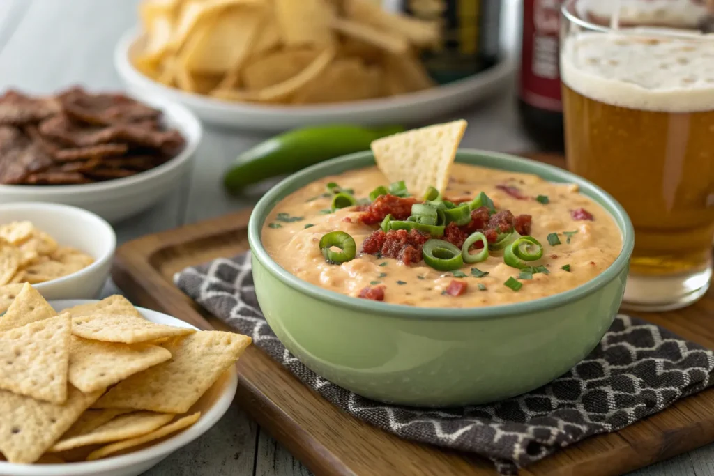 Rich and indulgent, this dip is best enjoyed with chips, crackers, or vegetable sticks in moderation.