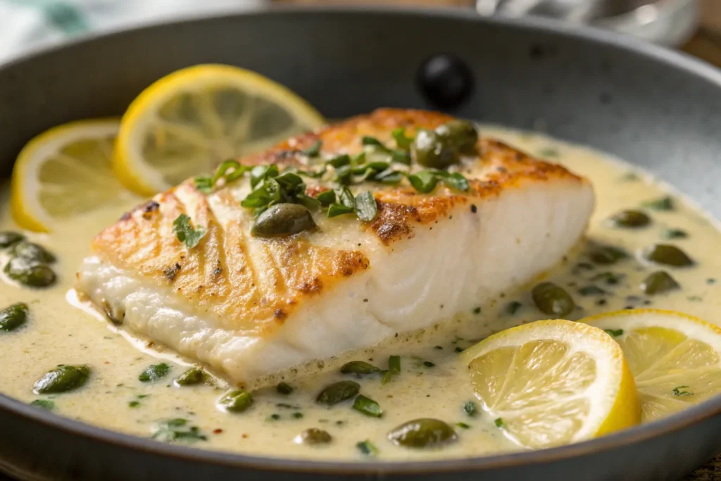 Baked Cod in Coconut Lemon Caper Cream Sauce