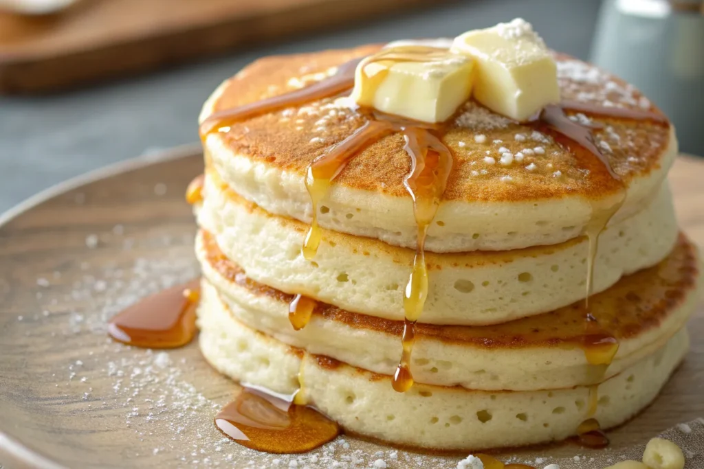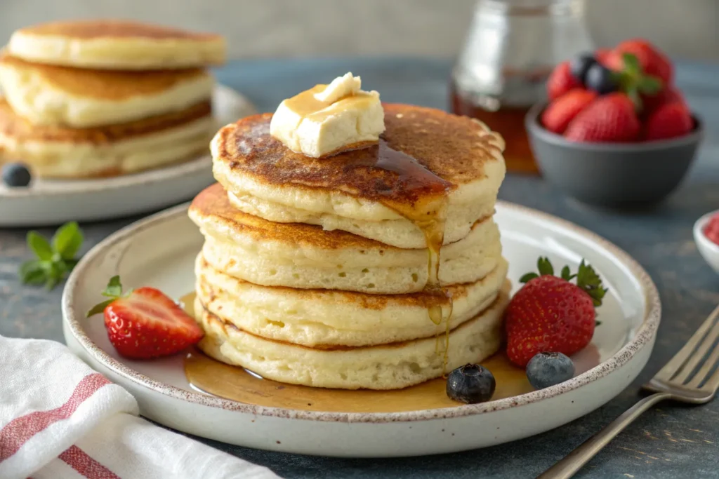 These pancakes are delightfully thick and cloud-soft on the inside, with a tender crumb that melts in your mouth. The exterior develops a light golden crust that adds just enough contrast without becoming crisp or dry. Flavor-wise, they are gently sweet and buttery with a warm, comforting aroma that fills the kitchen as they cook. Their balanced taste makes them incredibly versatile, rich enough to enjoy with syrup and butter, yet neutral enough to pair with fresh fruit, whipped cream, or even savory sides like eggs and bacon.