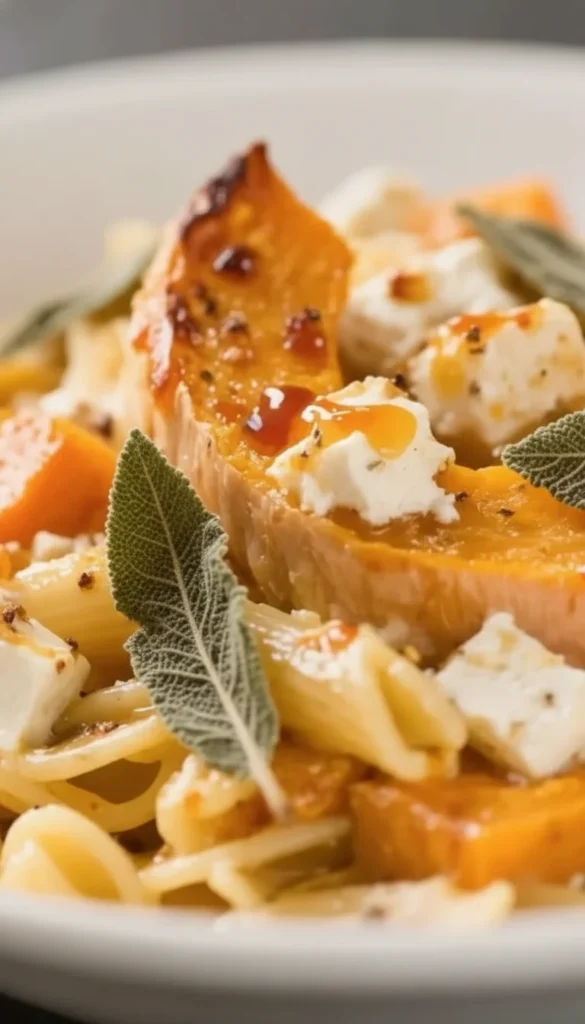 Butternut Squash Baked Feta Pasta With Sage and Hot Honey - Cozy, Creamy, and A Little Spicy