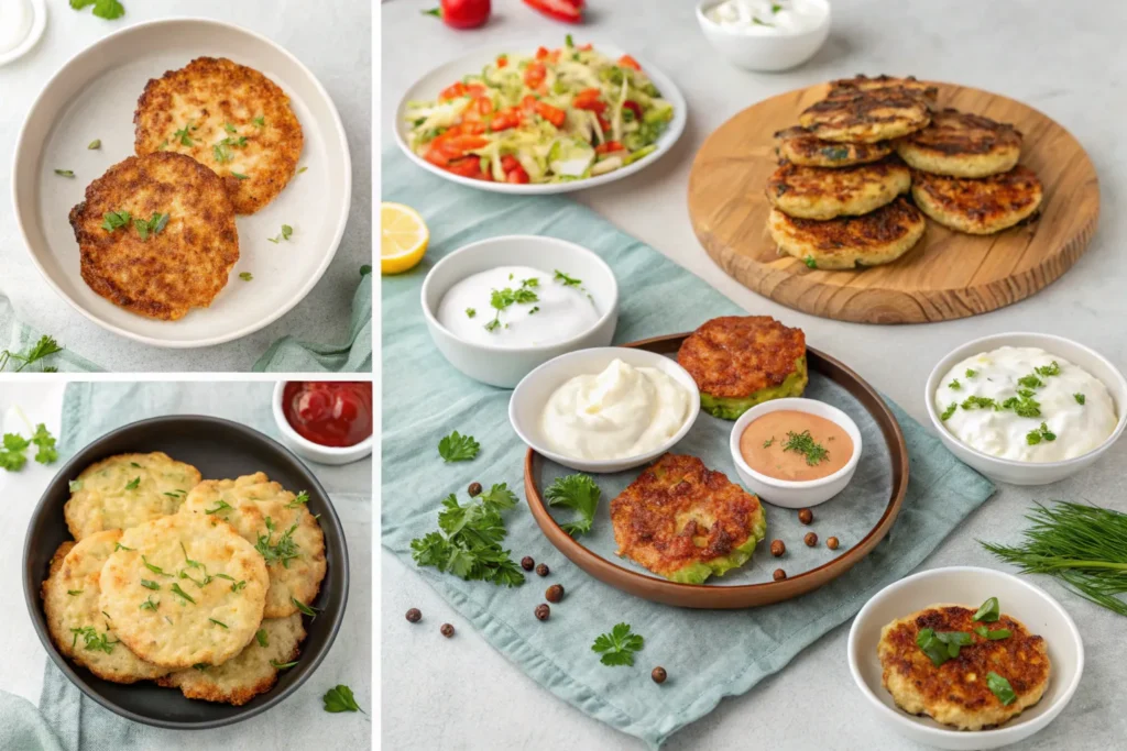 Cabbage pancakes taste great served hot with sour cream, yogurt dip, garlic sauce, or spicy mayo. They also pair well with fresh salads, soups, or as a side dish for grilled meats. Leftovers can be reheated in a pan or air fryer for best texture.