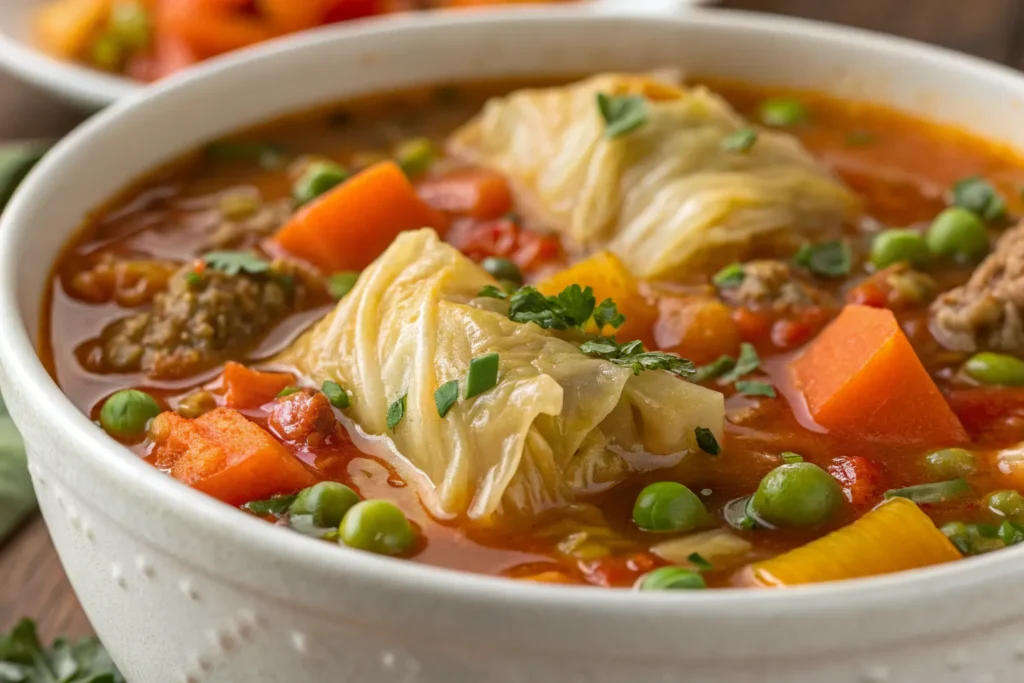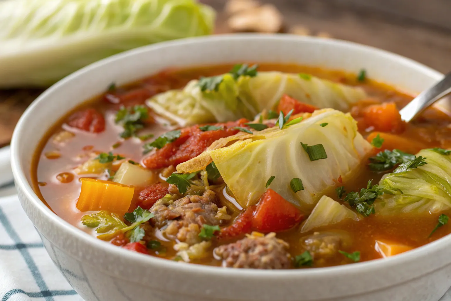 Cabbage Roll Soup is savory, slightly sweet, and deeply comforting. The cabbage softens in the broth while retaining a gentle bite, and the rice absorbs the rich tomato flavors. Ground meat adds heartiness, and the combination of herbs and spices creates a familiar, homey flavor reminiscent of classic stuffed cabbage.