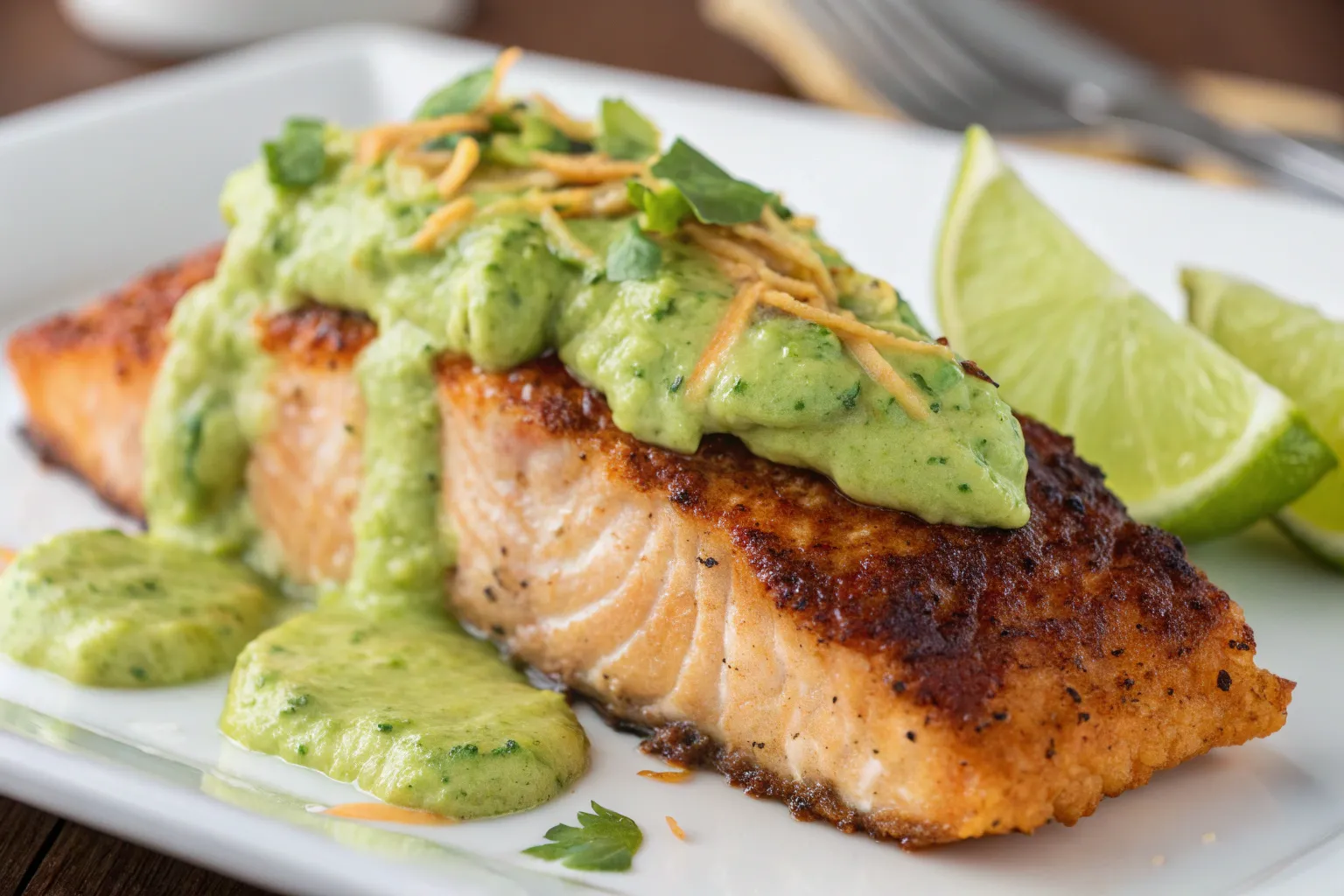 Cajun Salmon with Avocado Lime Sauce