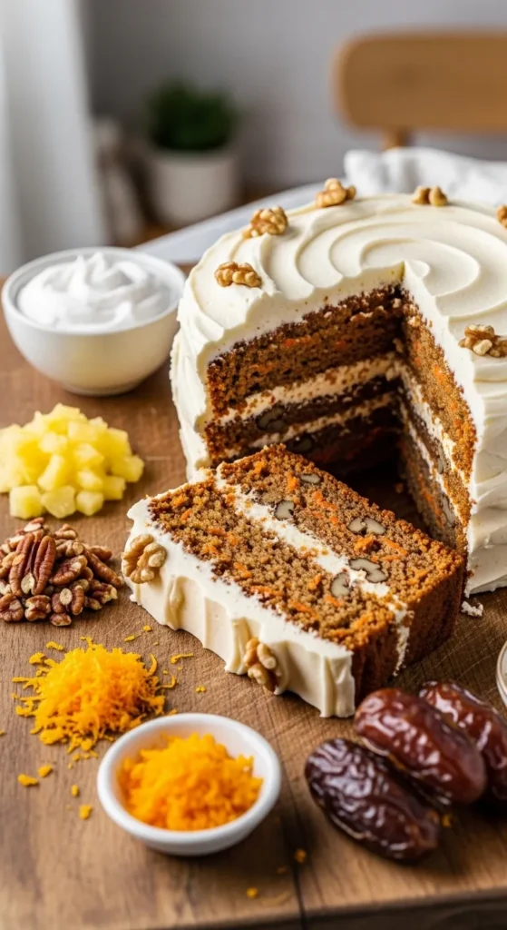 So You’re Craving Something Sweet (and Carroty) So you’re craving something tasty but too lazy to spend forever in the kitchen, huh? Same. That’s why this Carrot Cake with Walnuts and Cream Cheese Frosting is basically my love language in dessert form. Moist, sweet, slightly nutty, and with frosting that could probably get its own fan club this cake is like a hug on a plate. And the best part? It’s not rocket science. Seriously, if I can make this without burning the kitchen down, anyone can.