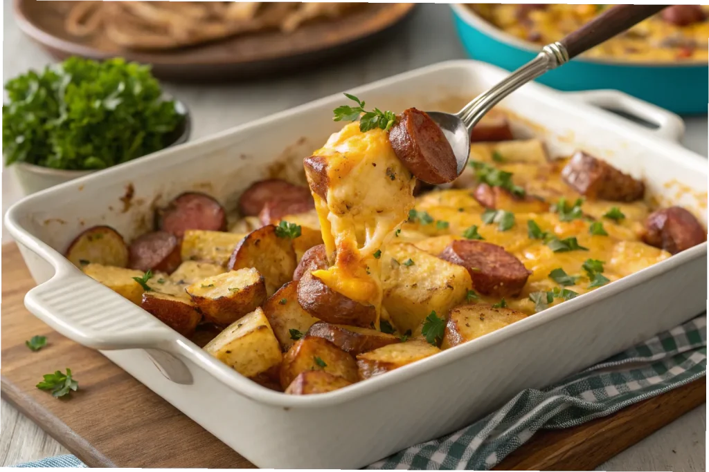 Even a beginner can make this dish with confidence. By breaking it down into easy steps — prepping, cooking, and assembling — you can achieve perfectly tender potatoes, melted cheese, and savory sausage every time.