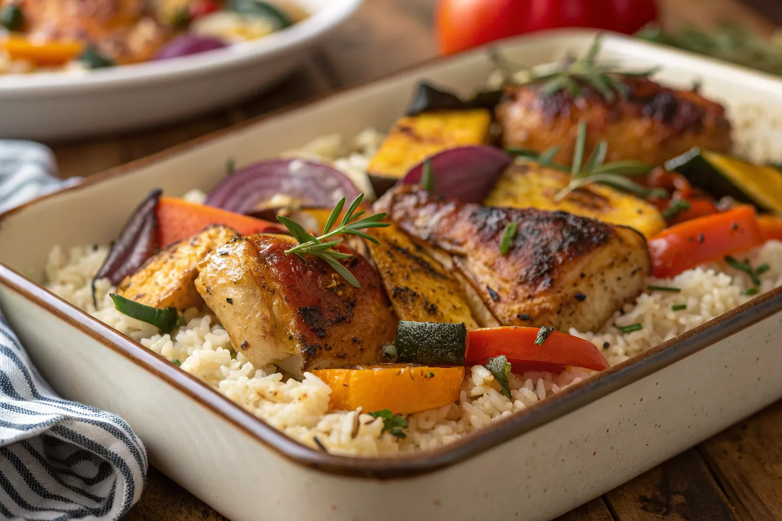 Chicken & Rice Bake with Fall Veggies is the ultimate cozy, one-pan meal for autumn. It’s hearty, nourishing, and packed with seasonal flavors that the whole family will enjoy. With minimal prep and maximum comfort, this dish is perfect for weeknight dinners, meal prep, or casual entertaining. Gather your ingredients, prep your veggies, and enjoy a warm, satisfying, and colorful fall meal.