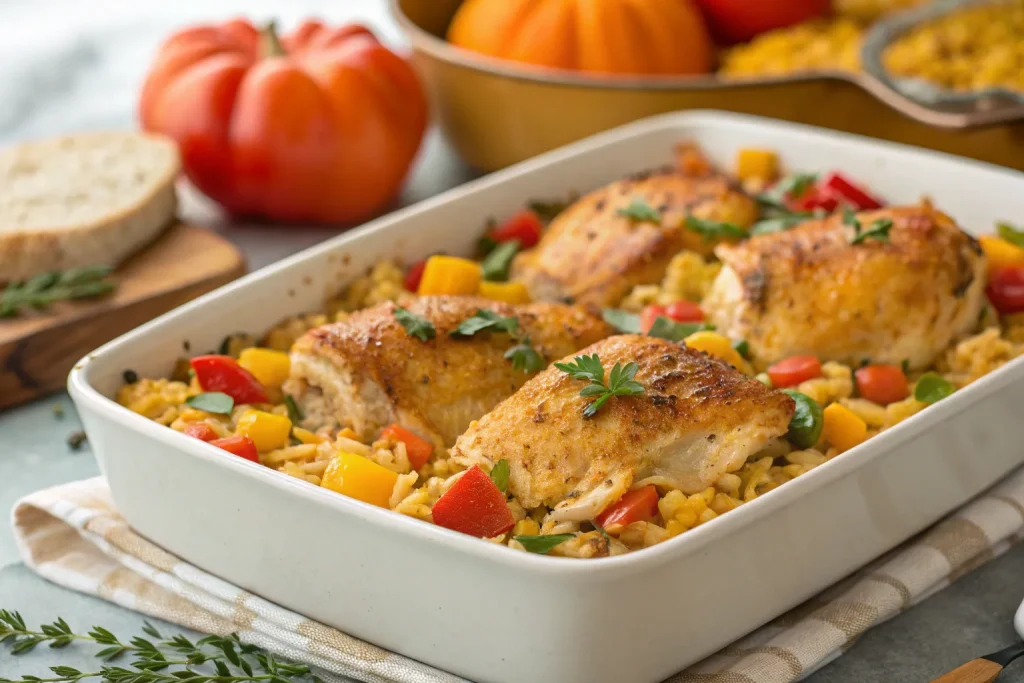 Chicken & Rice Bake with Fall Veggies is the ultimate cozy, one-pan meal for autumn. It’s hearty, nourishing, and packed with seasonal flavors that the whole family will enjoy. With minimal prep and maximum comfort, this dish is perfect for weeknight dinners, meal prep, or casual entertaining. Gather your ingredients, prep your veggies, and enjoy a warm, satisfying, and colorful fall meal.