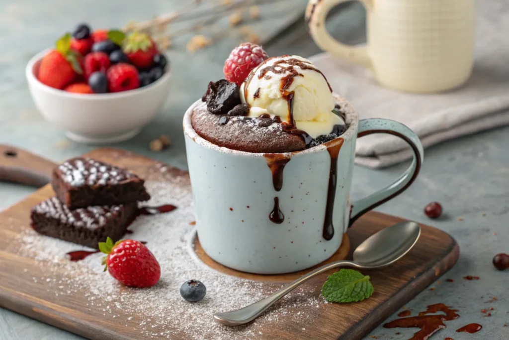 Enjoy it straight from the mug while it’s warm and gooey, or turn it into a full dessert moment by adding a scoop of vanilla ice cream, a drizzle of chocolate sauce, or a dusting of powdered sugar. Fresh berries or a spoonful of whipped cream also pair beautifully with the rich chocolate.