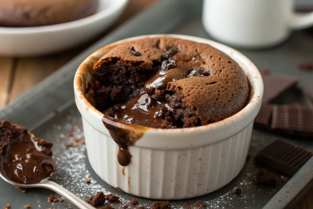 Grab a spoon and dig in while it’s warm! The first scoop should reveal a rich, flowing chocolate center. Enjoy it straight from the mug or dress it up with ice cream, whipped cream, or powdered sugar.