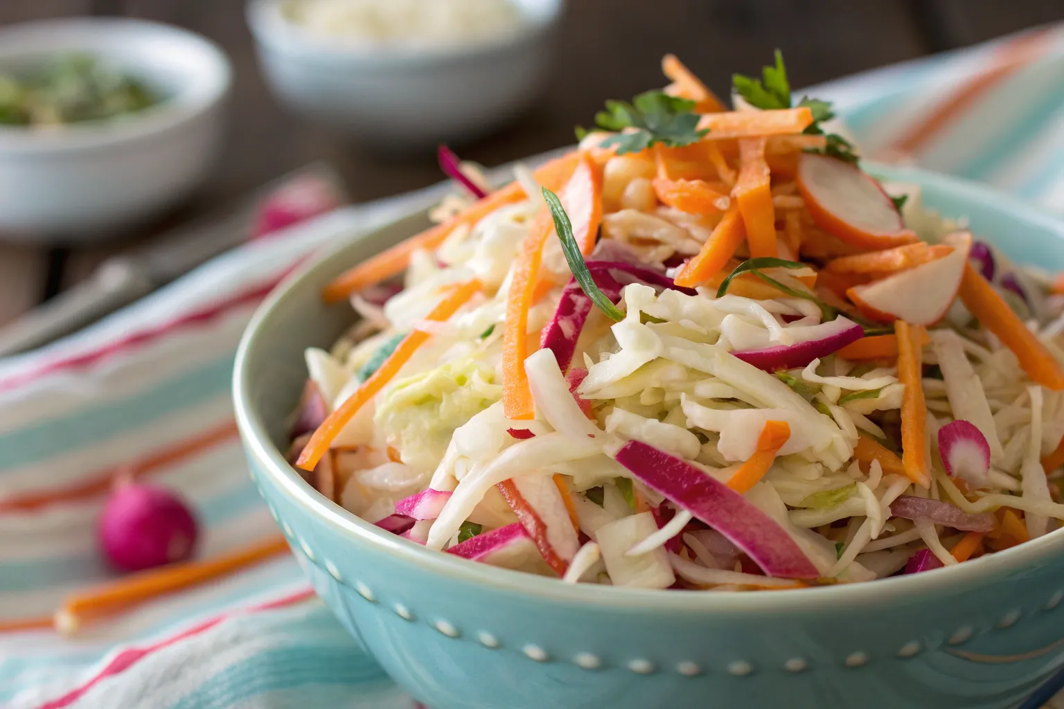 Fermented cabbage slaw is shredded cabbage (often with other vegetables) that’s salted and left to naturally ferment, creating a tangy, probiotic-rich side dish.