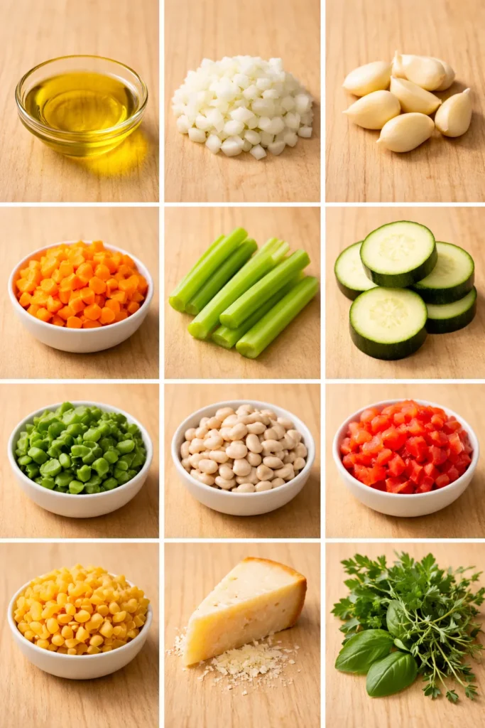 - Pasta: No pasta? Rice or quinoa can slide in. Minestrone’s chill like that.