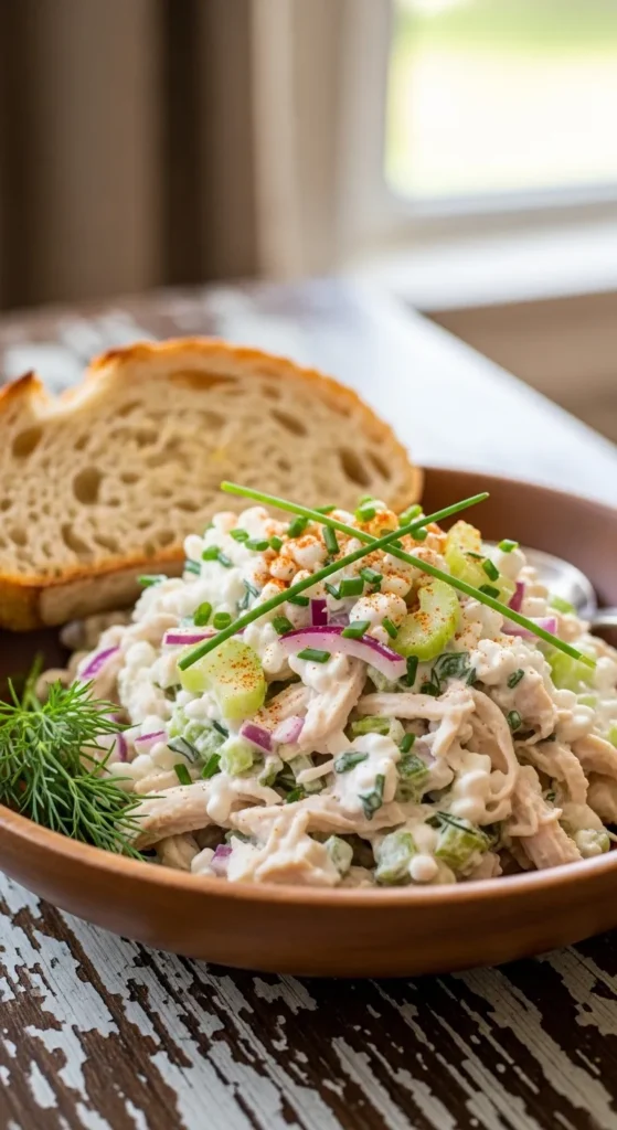 So there you have it. A Cottage Cheese Chicken Salad that’s quick, creamy, and fancy enough to trick people into thinking you’re a culinary wizard. Seriously, it’s one of those recipes where you can flex a little throw some herbs on top, serve in cute bowls, snap a pic for Instagram and then enjoy knowing you didn’t actually slave over it.