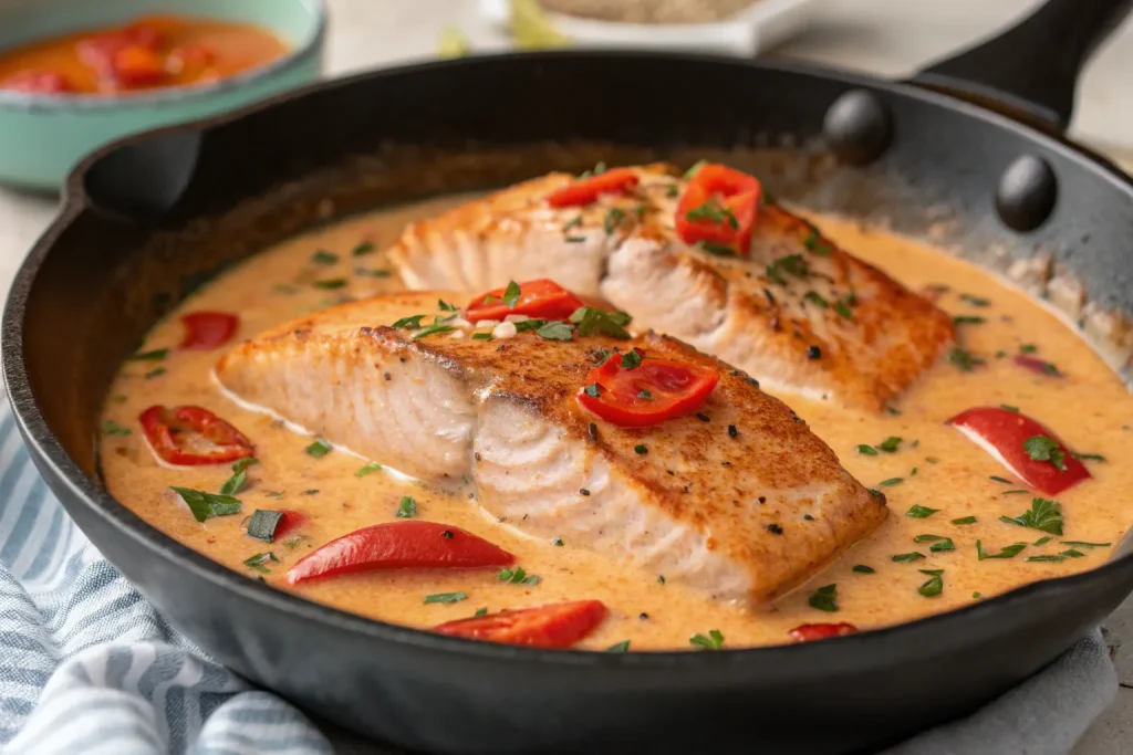 Nestle the cooked salmon back into the skillet, spooning the creamy sauce over the top. Let it warm through for another minute or two. Garnish with fresh herbs and serve immediately.
