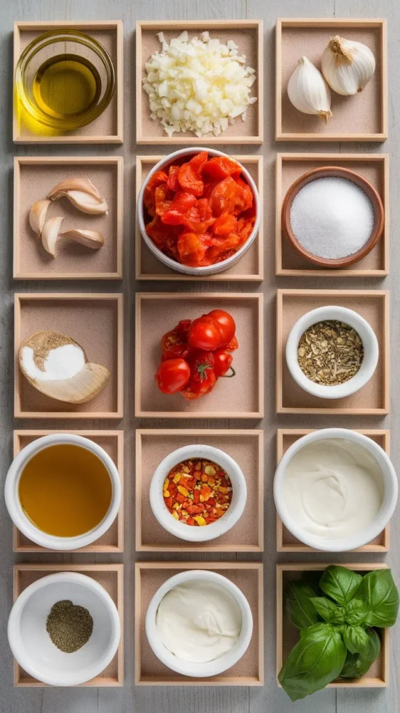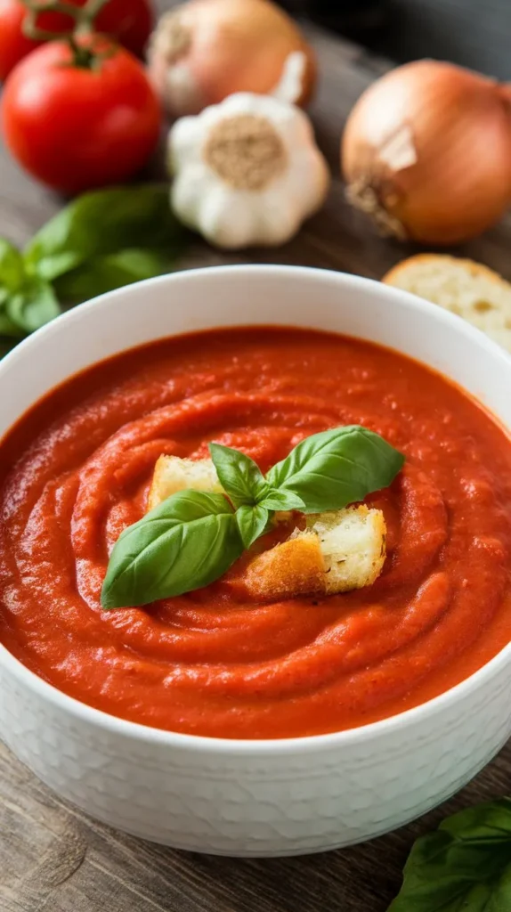 Optional for garnish: a drizzle of cream, a few basil leaves, or croutons for extra crunch points.