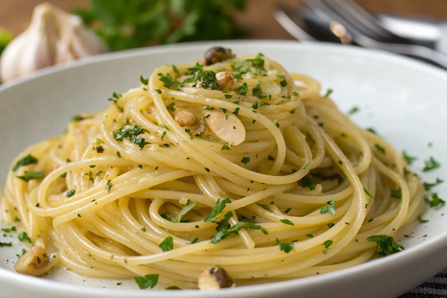 Do not overcook the garlic as it can become bitter. Adjust cream quantity depending on desired sauce thickness. Fresh herbs added at the end preserve their flavor and color.