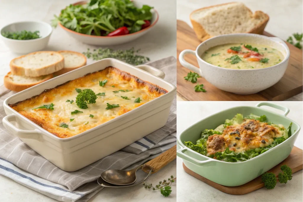 To serve this casserole elegantly, present it in a ceramic or glass baking dish straight from the oven. Garnish with fresh herbs such as parsley or thyme for a pop of color. Pair it with a crisp green salad, crusty bread, or a light soup to create a balanced and visually appealing meal.