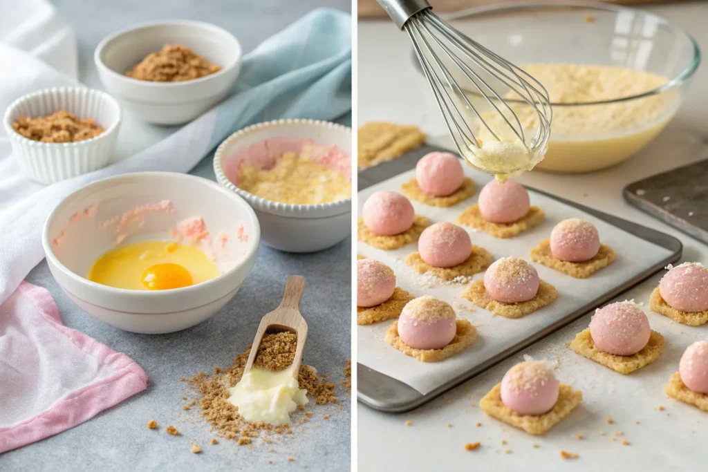 - Mix crushed graham crackers or cookie crumbs with melted butter. Roll cheesecake balls in the mixture to coat evenly.