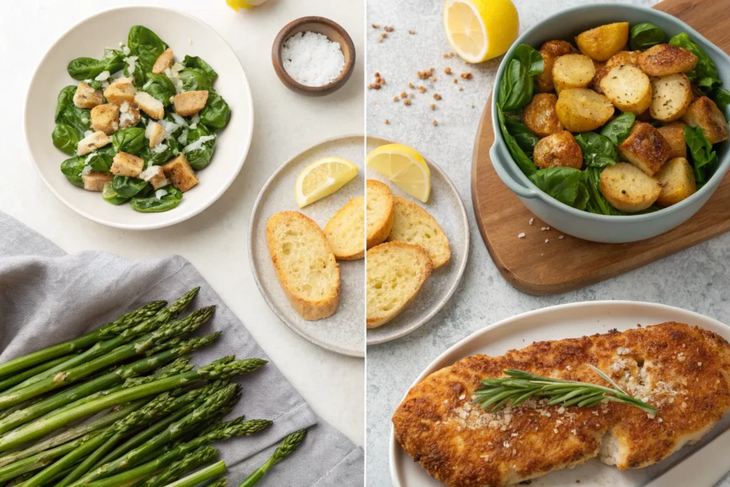 Turn this recipe into a complete one-pan meal by adding vegetables directly to the baking sheet. Green beans, broccoli florets, sliced carrots, and Brussels sprouts all roast beautifully alongside the chicken and potatoes. Toss the vegetables with olive oil, salt, pepper, and a light sprinkle of Parmesan before adding them to the pan. Softer vegetables like broccoli or green beans can be added halfway through cooking to prevent over-roasting, while heartier vegetables such as carrots or Brussels sprouts can roast the entire time.