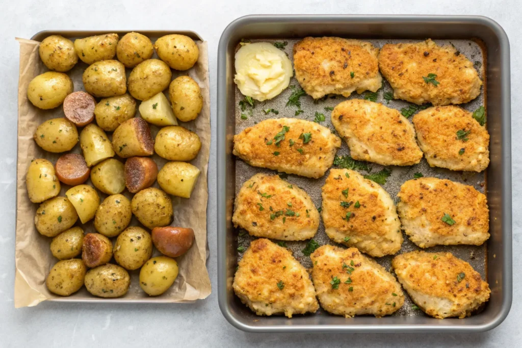Each ingredient in Crispy Garlic Parmesan Chicken and Baby Potatoes plays an important role in building flavor, texture, and balance. Using simple, high-quality ingredients ensures the dish turns out rich, comforting, and perfectly crisp.