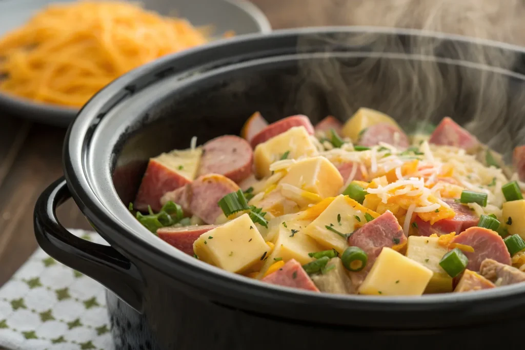 4. Cook: Cover and cook on low for 4–5 hours or on high for 2–3 hours, until potatoes are tender and the casserole is bubbly.