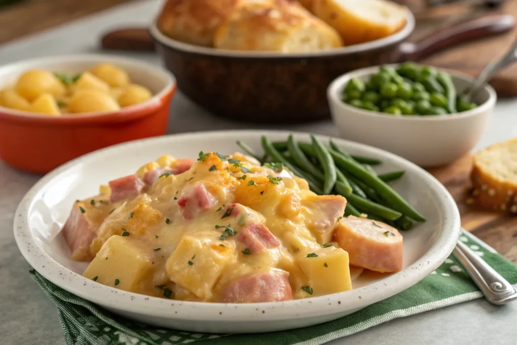 Simple, high-quality ingredients make all the difference. This casserole uses staple pantry items like ham, potatoes, cheese, and cream of mushroom soup to create a dish that’s both comforting and flavorful. Each ingredient contributes to the rich, creamy texture and hearty taste.