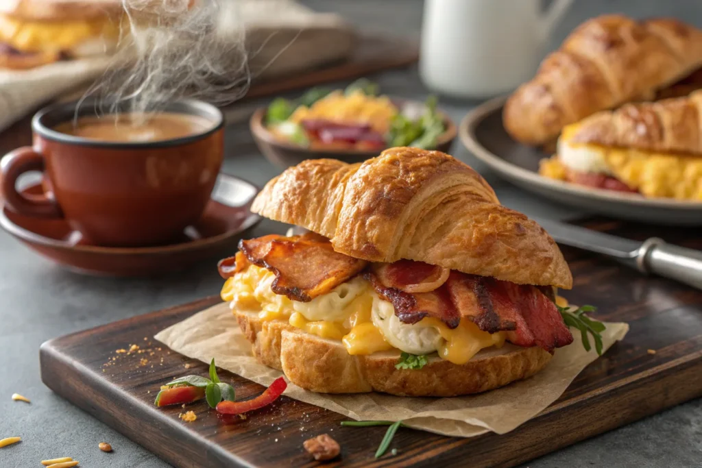 The Croissant Breakfast Sandwich is a beautiful blend of French pastry tradition and American breakfast classics. Croissants, with their buttery, flaky layers, have been a French staple since the 19th century. The idea of stuffing them with eggs, cheese, and bacon reflects modern café culture , fast, portable, and indulgent.