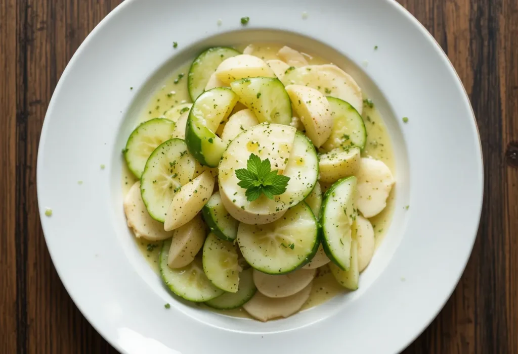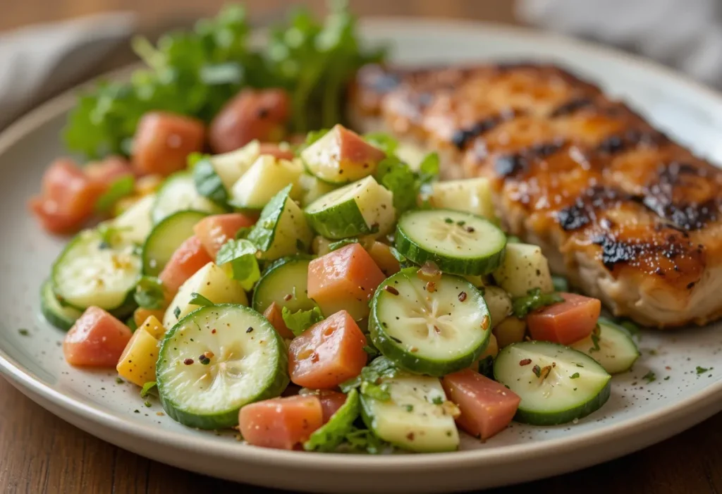 This salad’s light and crisp profile makes it incredibly versatile on the plate. It’s ideal as a refreshing side dish but can also play a supporting role in larger meals. Whether you’re planning a picnic, plating up brunch, or looking for a cool bite on a hot day, these serving ideas will help you make the most of it: